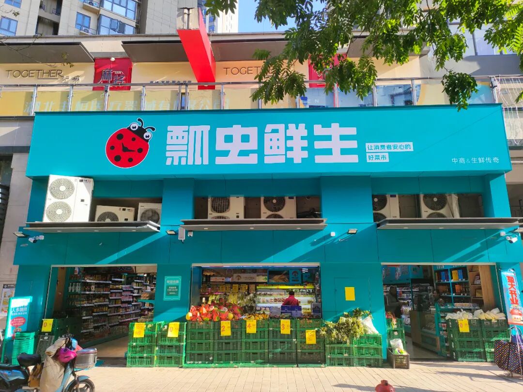 11月10日,生鲜传奇联合武汉中商共同打造的首家瓢虫鲜生社区生鲜店在武汉开业。