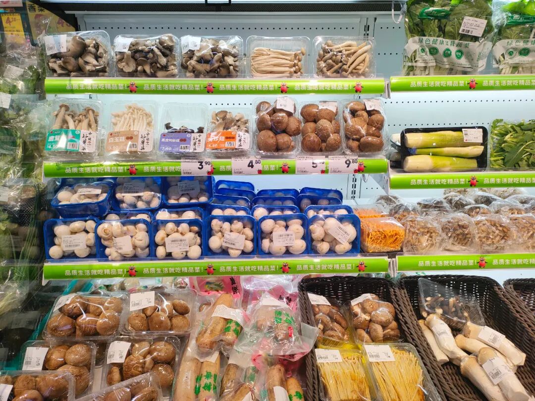 该店的另一大特点就是强化生鲜标品,尤其提高了精装蔬菜占比、引进产地标准周转筐,既降低损耗又简化流程、减少了用工。