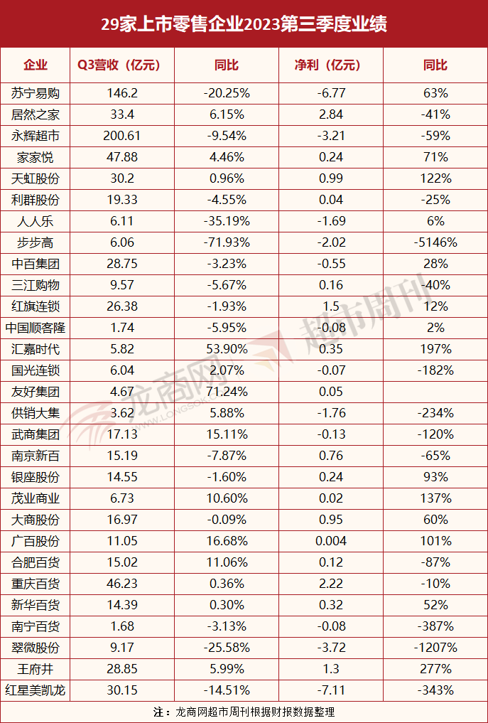 与上半年相比,第三季度上市零售企业的整体表现要更差。