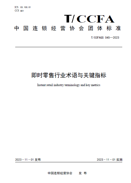 今天,中国连锁经营协会发布团体标准《即时零售行业术语与关键指标》(T/CCFAGS 045-2023)(以下简称《标准》)。本标准