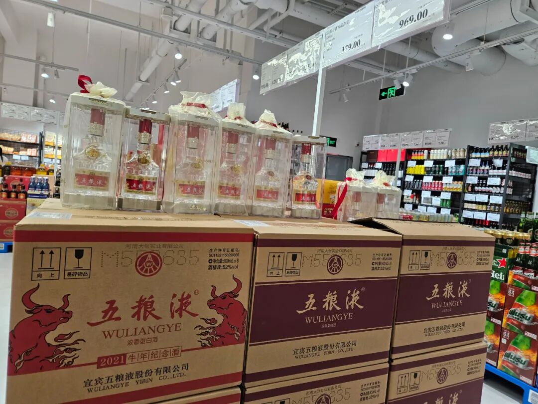 供应链体系的赋能,标品化、托盘化的运营流程,使得长申批发超市的会员制运营流程能够做到得心应手,具体体现在:一是产地(工厂)直采、高效周转,为终端售卖的商品做到质高价低奠定了基础;二是食材的安全稳定、中央厨房的背书、现场制售的高标准,可以为会员顾客提供安全健康、差异化、独享的高品质食品,美味;三是精选商品、差异化商品,可以让顾客以较低的价格买到市场上稀缺的商品,比如整个堆头陈列的五粮液52度牛年纪念酒仅售969元/瓶,知名电商平台的售价也在千元以上。