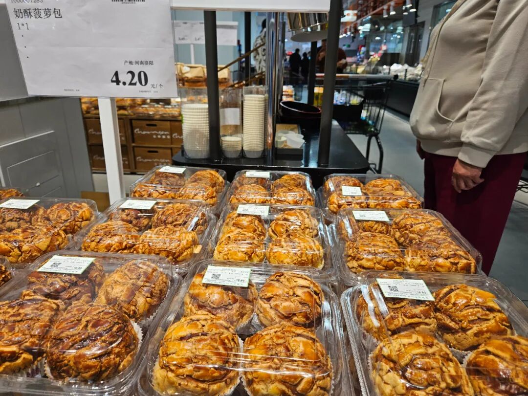 四是从商品包装规格上,更接近顾客的正常需求量,即使高周转的爆款单品也未采用大规格包装。比如现场烘焙的面包,一般为4个或6个一入,明显少于山姆、开市客的8个甚至12个的大包装。