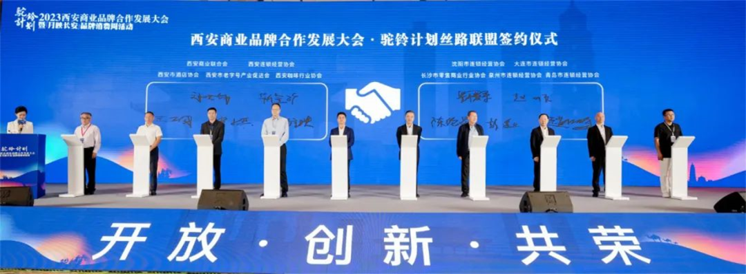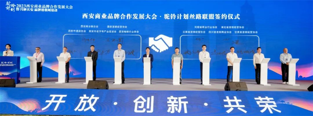本次活动以“月映长安”西安品牌消费周为主题,现场开设项目展示招商区、连锁品牌展区、第三方服务机构展区、现场商务品牌洽谈专区4大主题展区;现场设置“月映长安”西安品牌消费周直播间,发布了《2023西安商业品牌发展白皮书》;黑龙江省连锁经营协会等15家省市商协会代表与5家西安商协会代表进行了西安商业品牌合作发展大会•驼铃计划丝路联盟签约。![]()