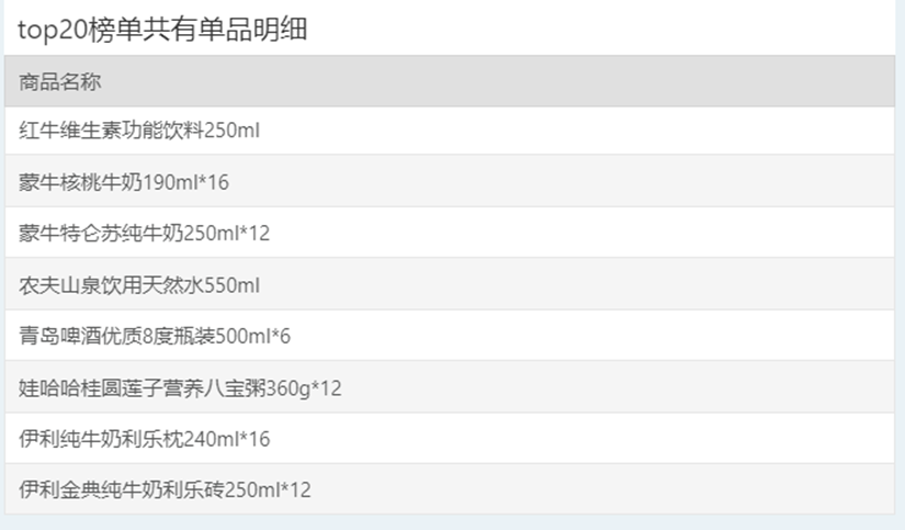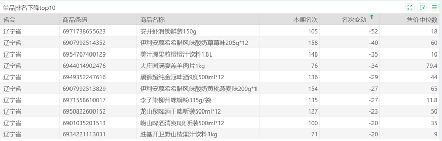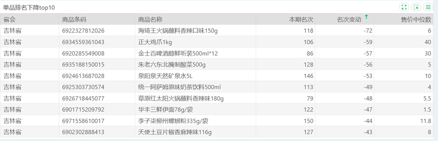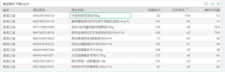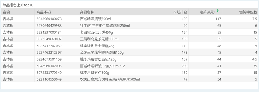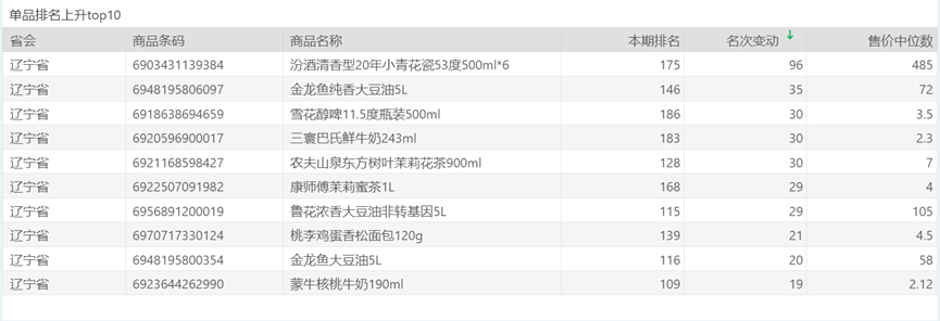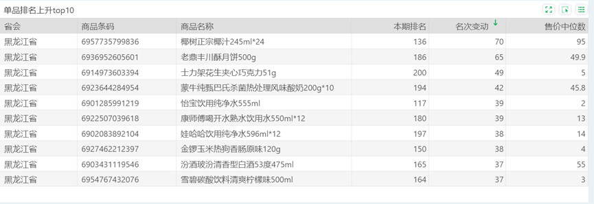 | 排名 | 名次变动 | 商品条码 | 商品名称 |