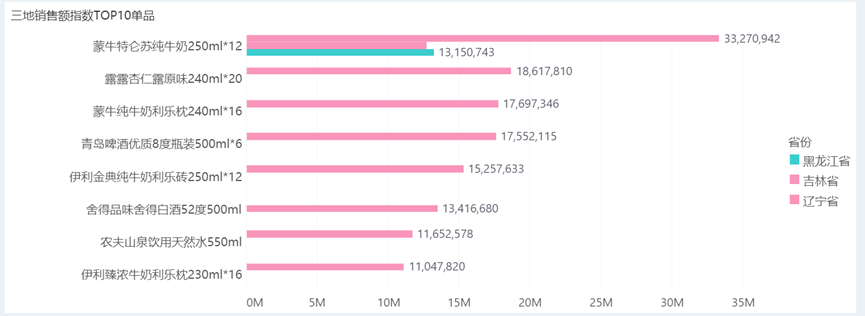 三地销售指数TOP10单品: