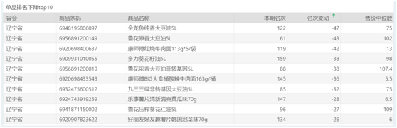 金龙鱼纯香大豆油5L 下降47名,为本期下降最严重的单品。