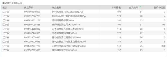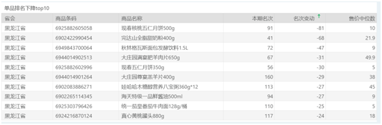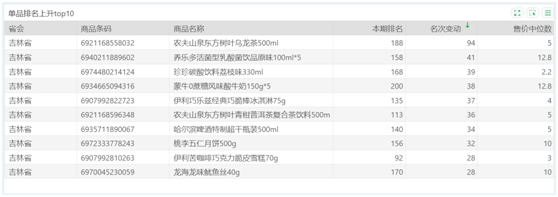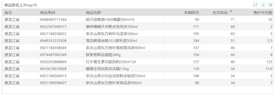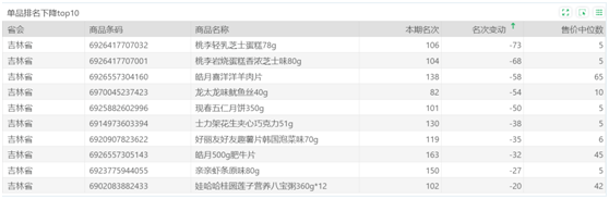 | 排名 | 名次变动 | 商品条码 | 商品名称 |