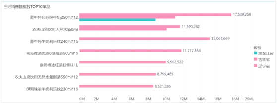 三地销售指数TOP10单品: