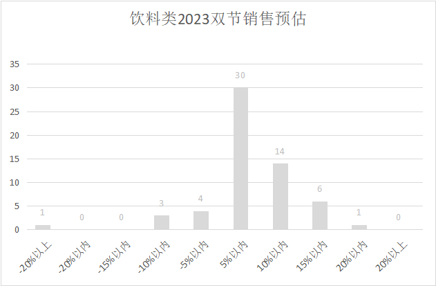 调查显示:有51家企业预测销售上涨(占比86%),8家企业预测销售下跌(占比14%),预估销售的中位数及众数为增长5%,平均值5.51%。在出游需求、节庆送礼、餐桌必备等多消费场景激发下,饮料稳中有增预判较为趋同。