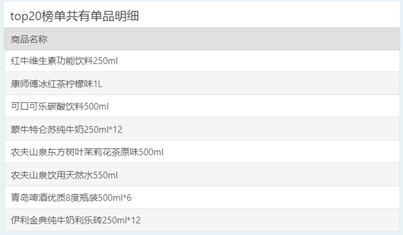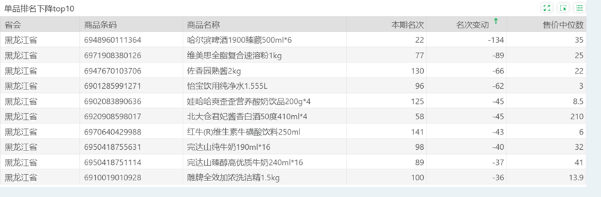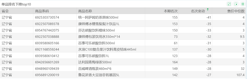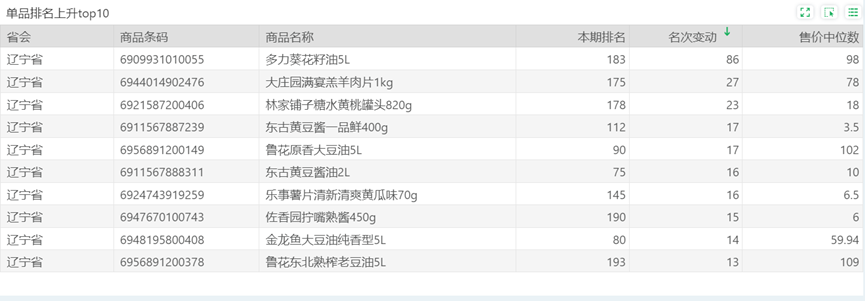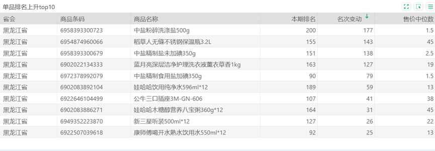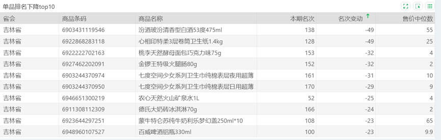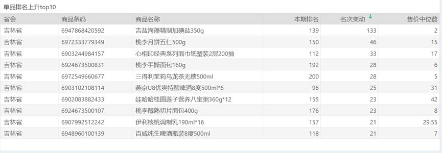 | 排名 | 名次变动 | 商品条码 | 商品名称 |
