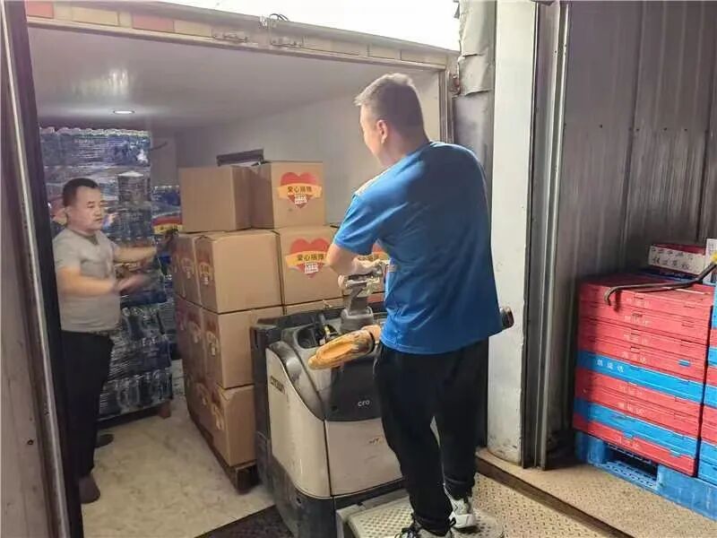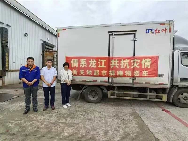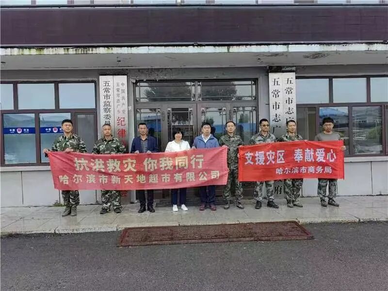 五常市志广乡,受水灾影响,房屋倒塌,稻田受损!8月28日,哈尔滨市新天地超市有限公司积极响应号招,勇担社会责任。在哈尔滨市商务局对接下来到五常市志广乡,为受灾群众带去豆油1740升、矿泉水1225提、方便面240袋、拖鞋600双等生活物资,总计价值10万元。