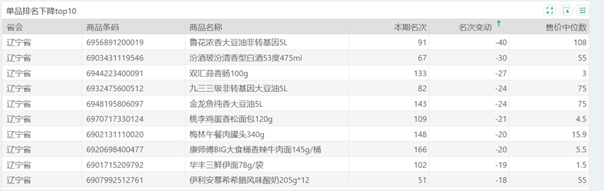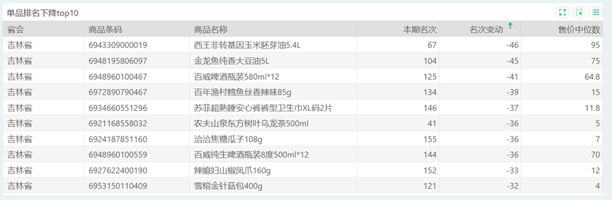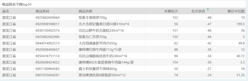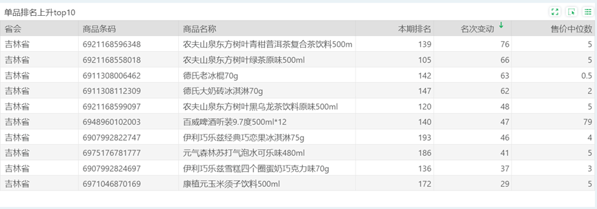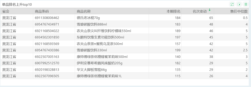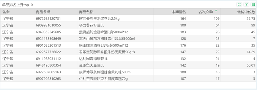 | 排名 | 名次变动 | 商品条码 | 商品名称 |