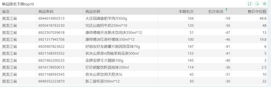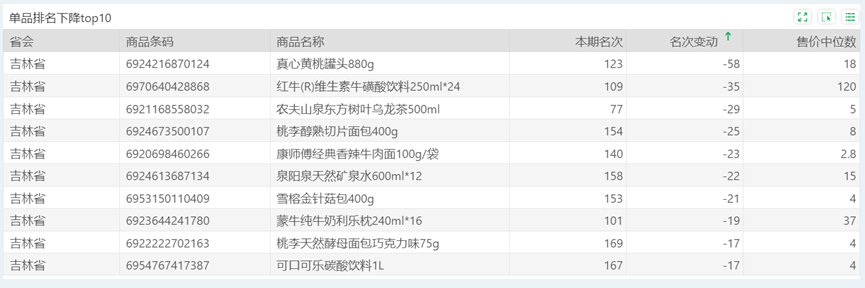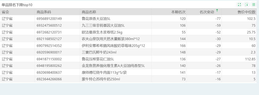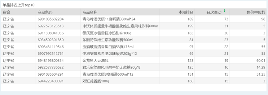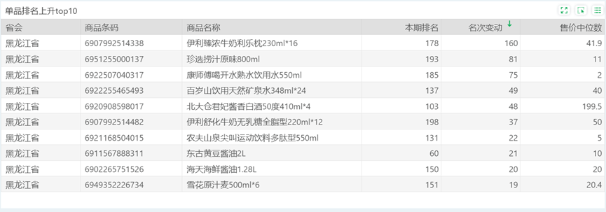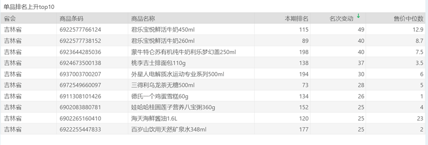 | 排名 | 名次变动 | 商品条码 | 商品名称 |