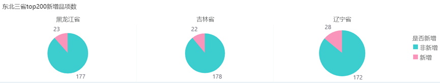 本期新增品项辽宁省最高,新增28个品项,黑龙江23个,吉林22个品项 ,更新比例分别14%,11.5%,11%