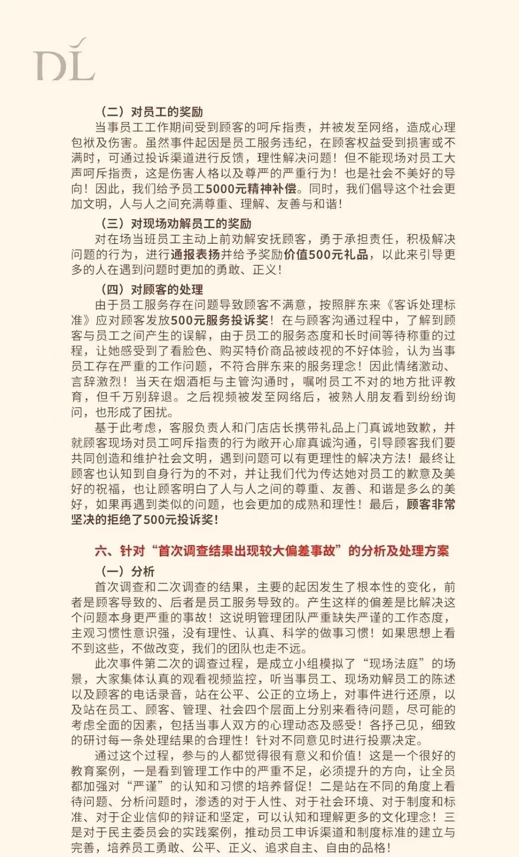 有点有面,有奖有惩,有理有据,公开透明,对超市负责人、员工、顾客雨露均沾,既解决了顾客的诉求,又维护了员工的正当权益。