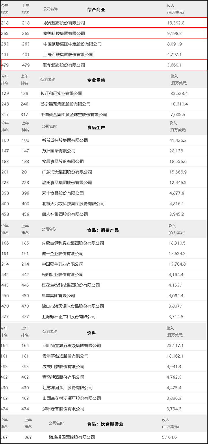 《财富》中国500强榜单出炉!永辉、物美、联华超市上榜!最赚钱公司竟然是它