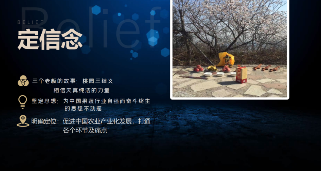 我们坚定思想,秉承为中国果蔬行业自立自强而奋斗终身的思想不动摇,余生别的事不干,就要促进中国农业产业化发展,打通农业产品流通的痛点,方便老百姓。这几年特别是疫情三年我个人有很多的发展机会,都能挣到大钱,我全拒绝了,就卖水果蔬菜。