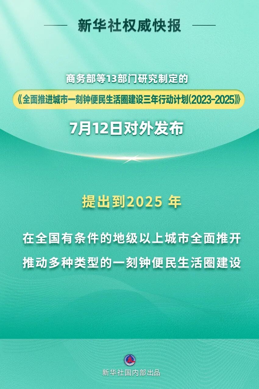 日前,商务部等13部门办公厅(室)发布关于印发《全面推进城市一刻钟便民生活圈建设三年行动计划(2023-2025)》的通知。