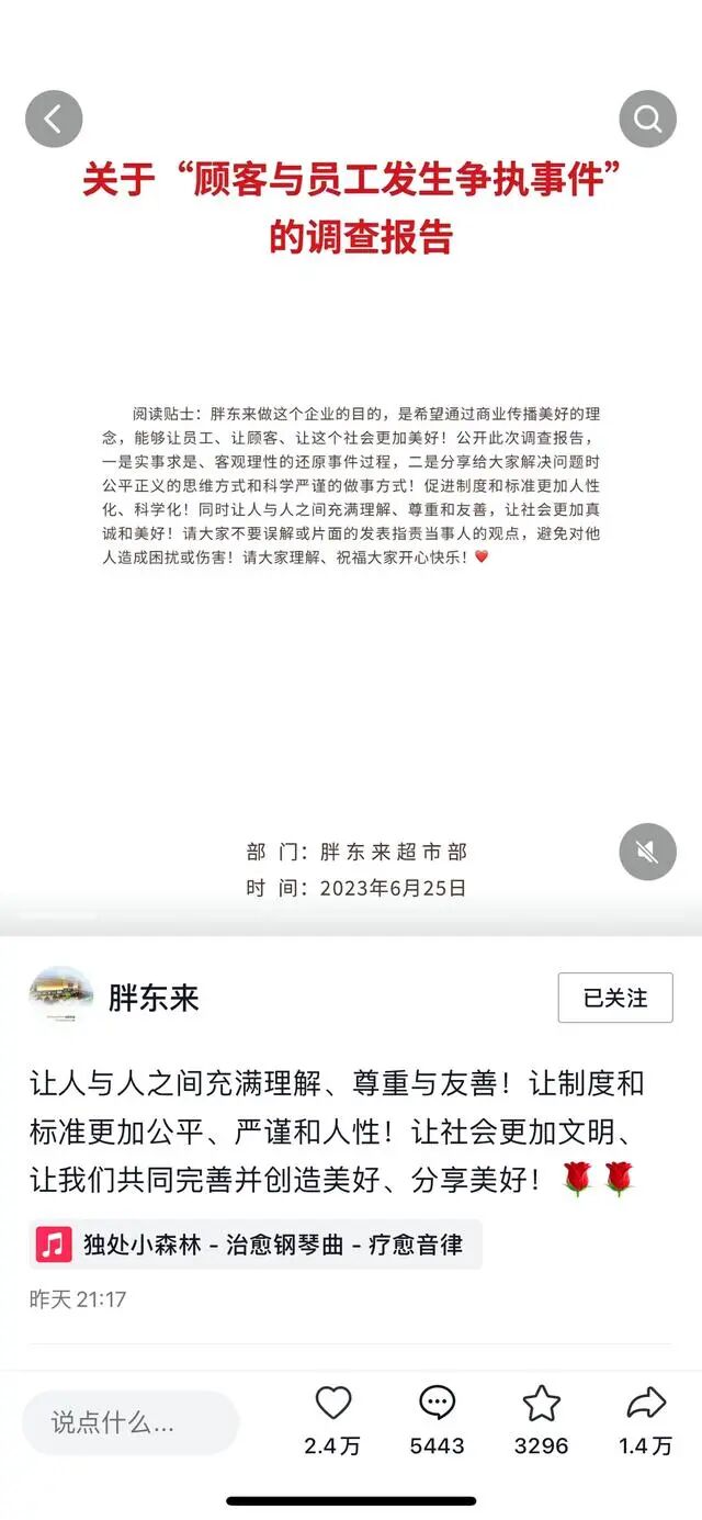 “胖东来8页报告调查顾客与员工争执”冲上热搜。