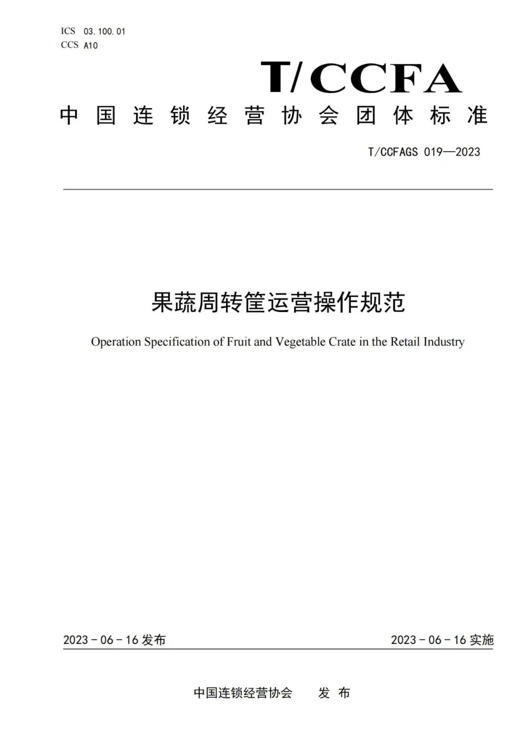 / 《T/CCFAGS 019-2023 果蔬周转筐运营操作规范》正式发布