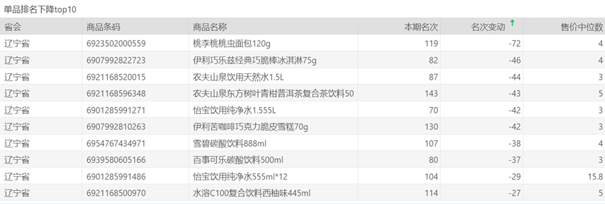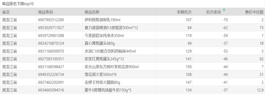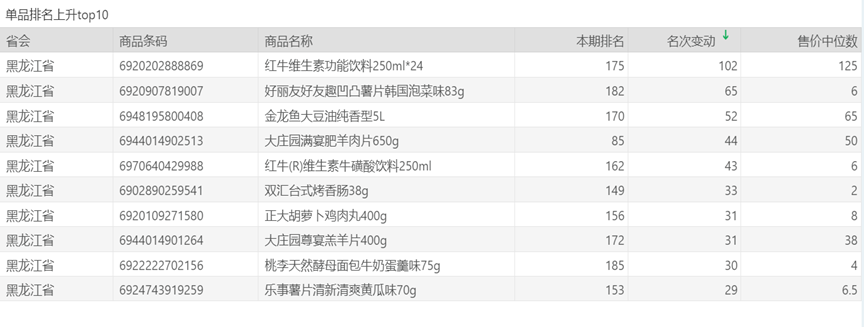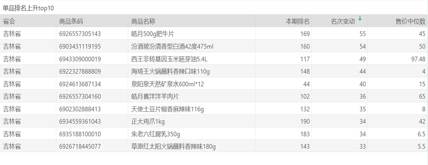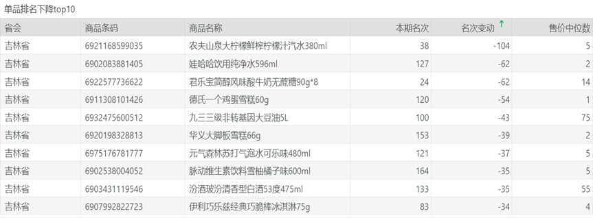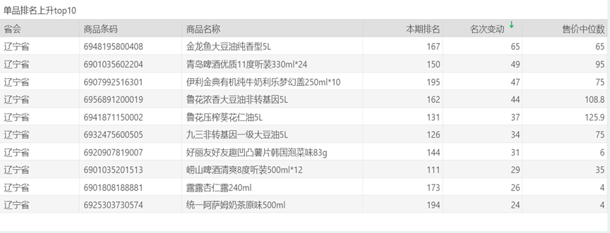 | 排名 | 名次变动 | 商品条码 | 商品名称 |