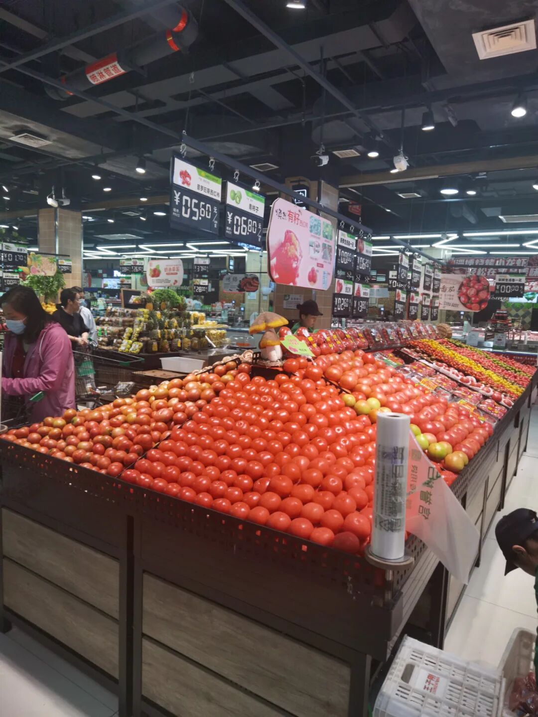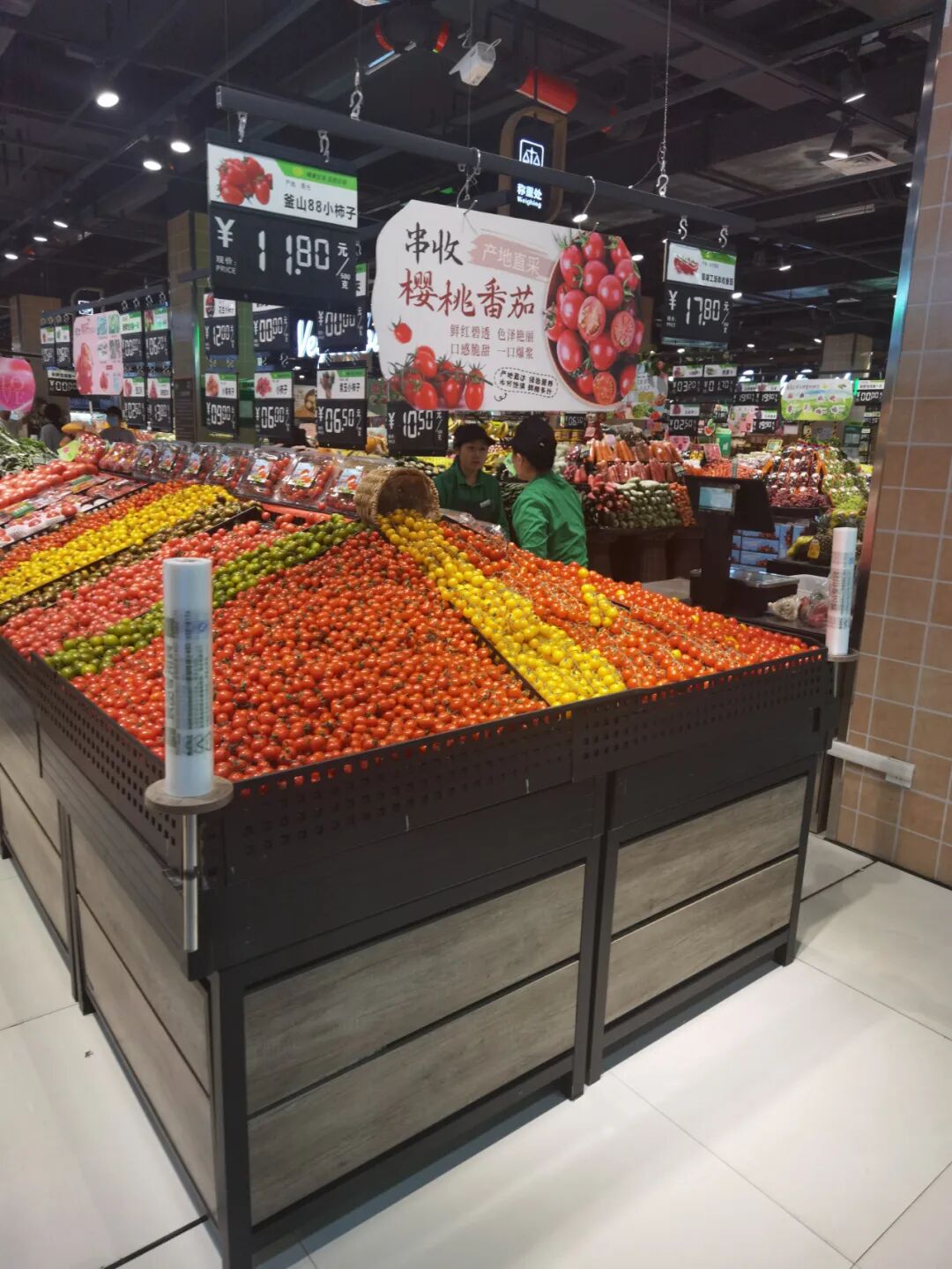 民生刚需品类蔬菜也是主打宽度、新鲜,品类十分多样。像流量单品番茄,有7个品种,包含不同颜色和规格大小,其中还有进口番茄。鲜度上,桓台店始终秉承“时刻打理”和“及时打折、报损”的原则去经营,日销2万多元。