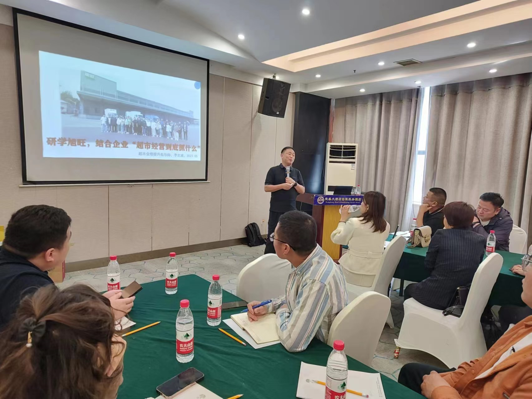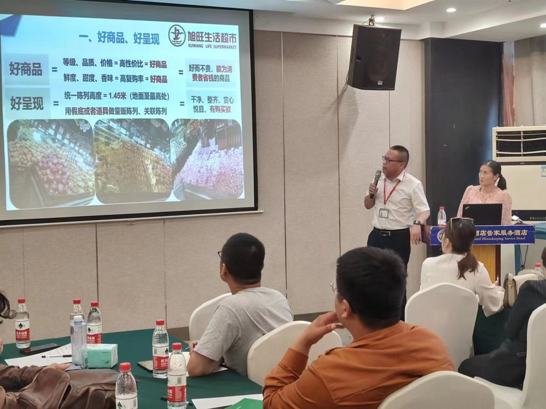 在旭旺团队分享环节,董事长许治分享了“旭旺发展理念与定位”,生鲜总监贾小亮分享了“旭旺生鲜特色经营”,营采总监刘亚分享了“旭旺好商品好呈现”,总经理彭杨分享了“旭旺小业态特色与周二特惠特色促销”,可谓精彩纷呈,亮点频现,让学员们学习借鉴多多。