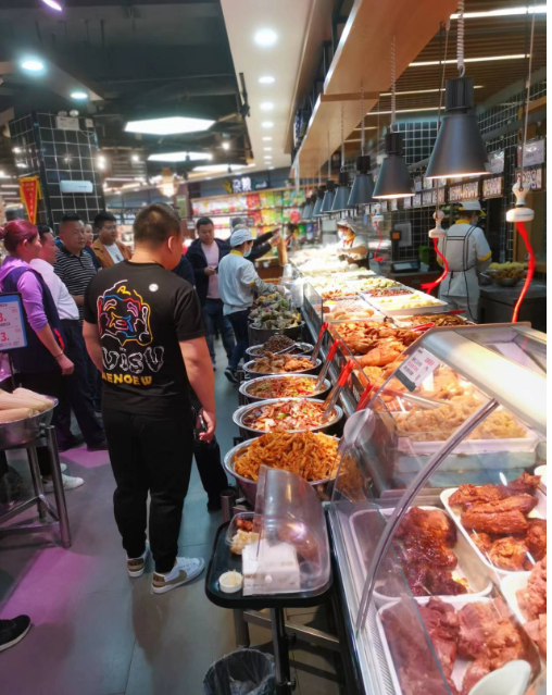 在看店环节,一天时间,考察学习了500平米的后园店,1200平米的东环岛店,700平米的人民西路店,2500平米的刘场店,850平米的丽晶店,500平米的云溪府店,3500平米的步行街店,还考察了旭旺新配送中心。卖场内烟火气和场景化的打造,诸多好商品好呈现,都给学员们留下了深深的记忆。