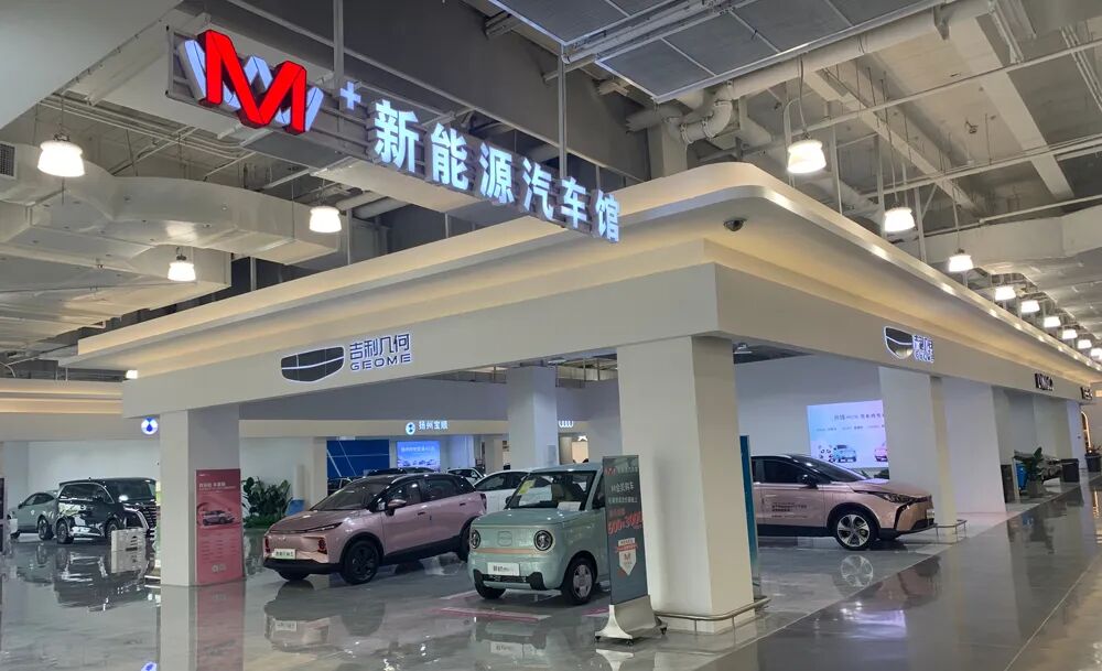 一层除了卖场经营区外,还引入了新能源汽车馆,比如小鹏、特斯拉、玛莎拉蒂等汽车品牌。