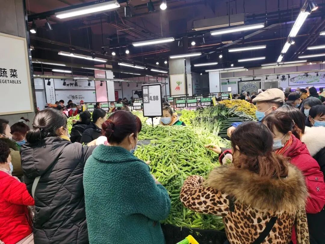 也因此,除了商品有特色、上新速度快,在当地,合力还以菜价便宜出名。在合力超市,不仅有“9毛9的蔬菜专区”,门店每天还会对生鲜区域的40种农副产品品种进行价格指导,安排工作人员到农贸市场和批发市场采集市场价,再按照比农贸市场低20%至30%的幅度定价,为顾客提供更多优质、实惠、充足、便利的产品。