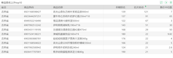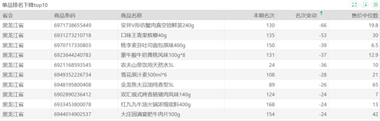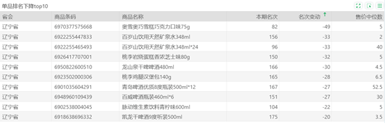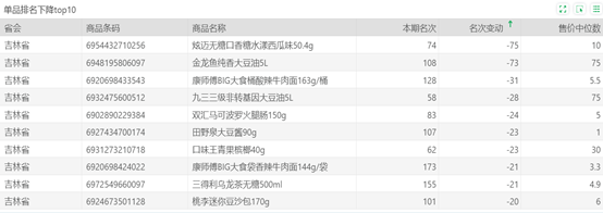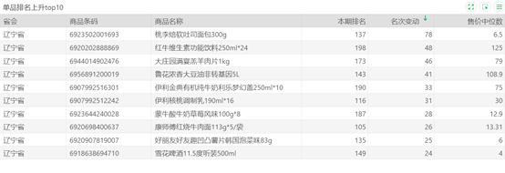 | 排名 | 名次变动 | 商品条码 | 商品名称 |