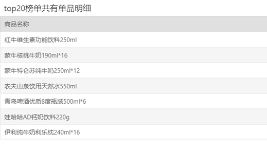 三地TOP20共有单品: