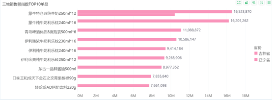 三地销售指数TOP10单品: