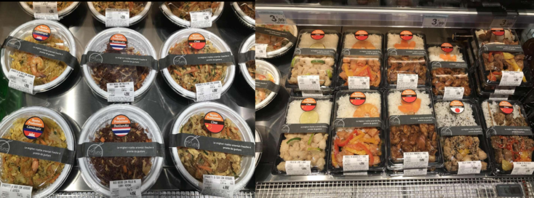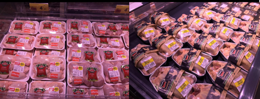 天虹炒菜,虽然这个炒菜还不是天虹做的,但是我觉得这是我看到现在做炒菜这个品类最有创意的。预制菜是有问题的,预制菜完全烧熟或者用一个盒子套起来,看起来没有购买欲;但天虹做的给消费者感觉是新鲜的,一个盒子里面每一种菜品都给它分别做了小包装,甚至有些肉制品还做了预热和预炒,明确告知消费者任何一道菜拿回家做都不用超过3分钟,里面还放材料包,这个我觉得是预制菜非常好的发展方向。有业内同行说,我没有加工厂,不能把商品包装起来怎么办?商品包不包装不是绝对的,我在广东嘉荣超市看到他们的豆制品可能比我们包装起来的更好。我们还在尝试把散称商品进行打包售卖,年轻人接受度高,上了年纪的消费者就更喜欢散的。算下来,我们把豆制品、蔬菜等生鲜品包装后销售大概增加8%。现在很多的超市都有专门的打包区,但包装好的商品销售不多,不成主流。玉米是比较特别的商品,这几年包装玉米卖得比散称玉米好,并非是简单将以前的玉米包装起来,而是品种更多样,出现了精品玉米、高端玉米、带颜色玉米甚至不同大小的玉米,颜色上有黑的、黄的、白的,大小有拇指玉米,在能提供给消费者更多选择时,包装就显得有意义了。客观地讲,我们跟国外的包装差距还是非常巨大的。这是意大利的一家家乐福,中国的家乐福如果能做成这样,就不至于衰弱了。这个家乐福店里基本上都是现场包装,无论切片还是切丝水平都非常棒,我们国内的大型卖场在预加工上还存在问题,仍然使用一把刀,国外的预加工已经全部是专业设备机器。还有他们创意的产品,4年前我在家乐福看到这一组产品是非常吃惊的,盒饭上面竟然标上中国、日本、韩国等不同国家的国旗,汇聚了各个国家的盒饭等半成品、熟制品,而且包装非常漂亮。我们国内在美感、技术应用上跟国外还是有距离的。在禽类包装上面我们也被国外甩了几条街,虽然我们也有抽真空的近似于这个鸡,但是它们做的就是鲜度和丰满感,还有美感,会让人很有购买欲。![]()