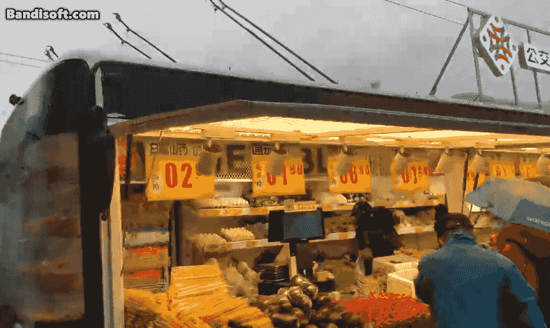 该“公交车”位于北京地铁柳芳站公交停车站外,改造为“驿栈”的是一辆客车,车身主要为黄蓝配色,一侧面对路边行人,一侧面对公交场站,为了不影响行人通行,车厢一侧打开,作为主要出售蔬菜生鲜的窗口。车厢顶部,立着“公交便民驿栈”的牌子。