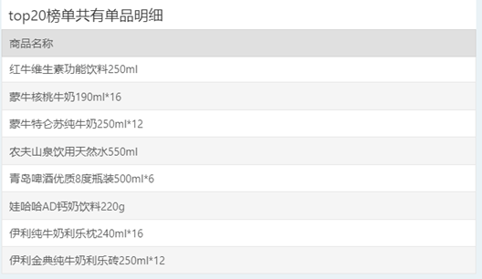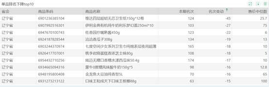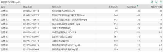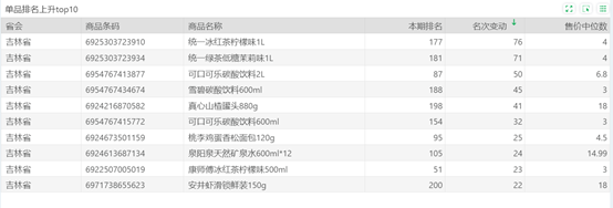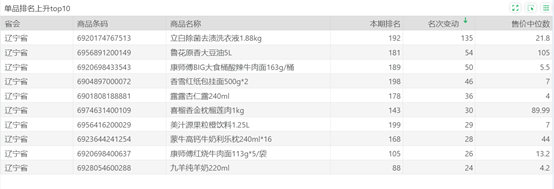 | 排名 | 名次变动 | 商品条码 | 商品名称 |