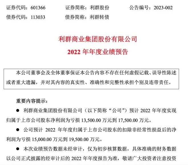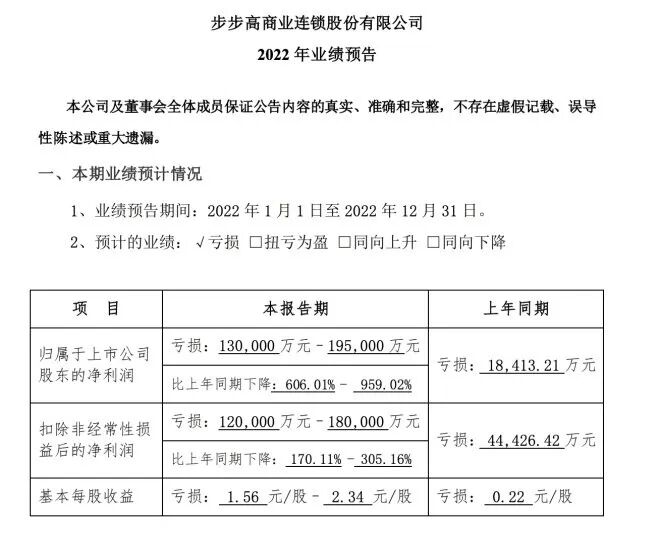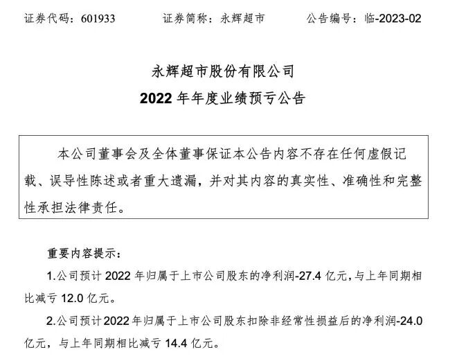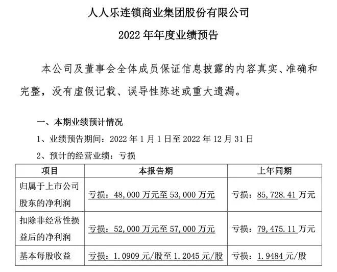 过去一年,受疫情常态化影响,居民消费复苏缓慢,实体零售的业绩受到不容忽视的影响。据《联商网》不完全统计,截至目前已有10家主要超市企业发布了2022年业绩预告或公布了业绩,包括永辉、步步高、家家悦、中百集团、人人乐等。此外,沃尔玛也发布2023财年第四季度财报。而从公布的各超市企业业绩预告来看,超市行业的2022年,依旧步履维艰,几乎全员预亏。2022年,零售行业发展前景错综复杂,超市企业大多预亏,集体承压,因此不得不采取战略收缩、关店止损策略。具体来看:1月15日,步步高发布2022年业绩预告,预计2022年亏损13亿-19.5亿,同比下降606%-959%。关于业绩预亏的原因,步步高在公告中称,报告期内公司进行了战略重大调整:除购物中心和百货店外,自2022年四季度开始,通过关停并转从四川市场全面退出,江西市场大幅收缩至新余、萍乡、宜春三地(临近湖南的城市);湖南、广西两省也同步关停并转低效亏损门店。上述调整造成了直接的资产损失和间接的商誉损失、所得税返还等多方面减少。此外,在第四季度,步步高十多个城市的门店被轮番封控,不仅客流急剧下降,公司还对部分商户实行租金反哺。上述因素叠加,导致了2022年业绩同比下降较大。1月20日,利群股份发布2022年年度业绩预告,预计2022年亏损1.35亿元到1.75亿元。2022年新冠肺炎疫情反复,利群股份主要经营区域大部分门店多次关门停业,受到疫情严重冲击,即使疫情防控放开的一段时间内,客流量仍下降明显,导致公司营收下降,利润亏损,对公司业绩产生较大影响。1月30日,永辉超市发布2022年年度业绩预告。永辉2022年归母净利润、扣非归母净利润分别减亏达12.0亿元、14.4亿元。值得注意的是,永辉业绩预亏并非主营业务所致,其亏损主要受金融资产公允价值变动损失6.4亿元、计提长期股权投资及其他长期资产减值6.0亿元、全年科技投入约7亿元、以及疫情等因素影响。而根据此前公告,永辉2022年上半年已实现盈亏平衡,扣非后归母净利润达0.94亿元,亏损主要是受去年下半年影响。永辉方面表示,随着经济环境回暖、公司数字化转型的不断推进以及门店布局的进一步优化,公司各类业务指标已呈现向好趋势,12月同店已转正。公告显示,家家悦预计2022年度实现归属于上市公司股东的净利润3500万元至5200万元;归属于上市公司股东的扣除非经常性损益后的净利润1200万元至1800万元,实现扭亏为盈。对于业绩同比改善、实现盈利的原因,家家悦称:2022年度公司适度控制开店速度,不断提升开店质量,关停了低效门店,保持了营业收入的稳定增长,同时经营效率不断提高,费用率同比下降,新区域亏损也得到改善。1月30日,中百集团发布2022年度业绩预告。预计2022年归属上市公司股东的净利润为-2.4亿元至-3.4亿元,同比下降967.49%-1412.27%;扣除非经常性损益后的净利润为-2.5亿元至-3.5亿元,同比下降140.14%-236.20%。对于亏损的原因,中百集团在公告中给出的解释是:2022年受宏观经济形势变化,居民消费需求放缓,加之疫情反复致临时闭店超预期,以及新业态及电商的发展带来渠道的多元化,实体店的来客数减少,造成营业收入和毛利额下降。同时,2022年中百集团关闭5家仓储大卖场,由此产生合同解约损失、装修等长期待摊费用摊余价值的一次性摊销及员工安置补偿等支出。另外,政府补贴收入同比减少,门店经营电费支出同比增加,以上因素叠加导致归属于上市公司股东的净利润亏损。1月30日,人人乐发布2022年年度业绩预告,预计2022年度归属上市公司股东的净利润为-4.8亿元至-5.3亿元,上一年度同期为-8.57亿元,亏损同比收窄;扣除非经常性损益后的净利润为-5.2亿元至5.7亿元,上一年度为-7.95亿元。对于业绩变动原因,人人乐在公告中强调,报告期内,受制于疫情反复与封控政策,相关区域出现大量门店频繁关门停业。同时,消费者消费习惯的快速线上迁移、众多线上平台加大社区团购、品牌商家线上渠道多元拓展、行业线下实体以及跨界竞争不断加剧等诸多不利因素叠加影响,导致客流大幅减少、销售严重下滑,毛利水平持续降低,经营性收益不及预期。1月30日,北京华联发布2022年年度业绩预告,预计2022年度归属于上市公司股东净利润产生亏损。据了解,华联股份预计2022年度归属于上市公司股东的净利润亏损1.6亿元-1.9亿元,去年同期是亏损1.77亿元。扣除非经常性损益后的净利润亏损1亿元-1.3亿元,去年同期是亏损5597.33万元。华联股份表示,业绩变动的主要原因是,报告期内,国内多地受到疫情冲击,公司旗下购物中心业务及影院业务的正常经营活动受到较大影响,陆续出现长时间停业、空置率增加、个别项目被迫闭店等情形。2月1日,中国顺客隆发布业绩预告。2022年度,中国顺客隆预期将录得亏损净额约为2653万元,相较2021年度的亏损净额约3826万元,亏损净额减少约31%。对于亏损净额减少,中国顺客隆在公告中给出的解释是,由于严抓成本控制,致使2022财年费用总额大幅下降。其中包括:租赁支出减少人民币500余万元;人工成本下降人民币300余万元;提前归还银行贷款,节约利息费用人民币200余万元;水电费、商品损耗及促销等费用减少人民币600余万元。2月21日,沃尔玛发布2023财年第四季度财报(2022年11月1日-2023年1月31日)。其中,沃尔玛中国Q4业绩表现亮眼,净销售额增长13.5%,可比销售额增长13.3%。山姆会员商店和电商业务持续表现出