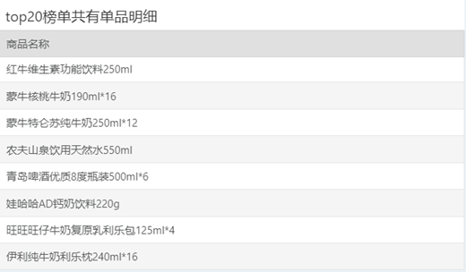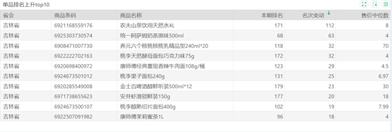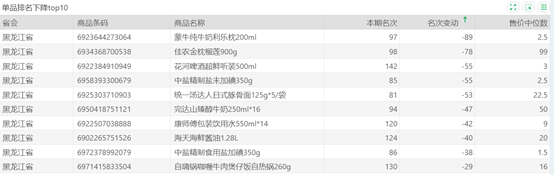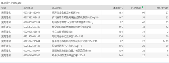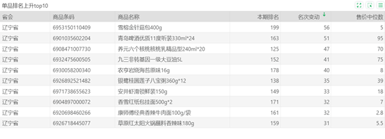 | 排名 | 名次变动 | 商品条码 | 商品名称 |