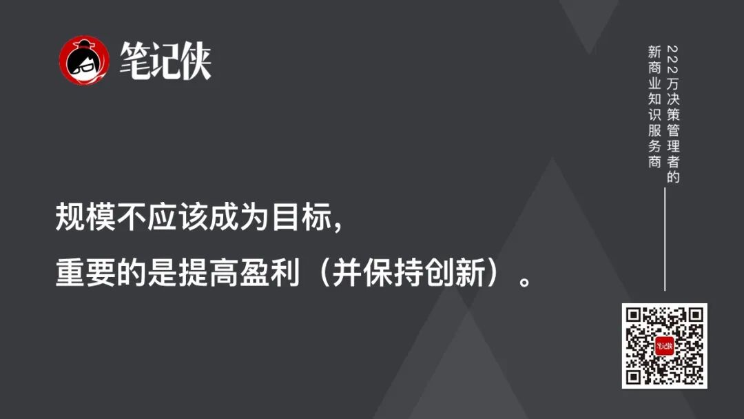 唯一需要注意的是:不要轻易改变公司规模。规模不应该成为目标,重要的是提高盈利(并保持创新)。