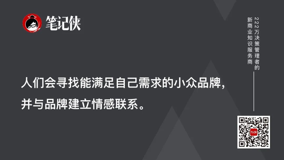 但有数据表明,情况已经发生了变化,现在出现了无数个分散的消费群体。人们会寻找能满足自己需求的小众品牌,并与品牌建立情感联系。