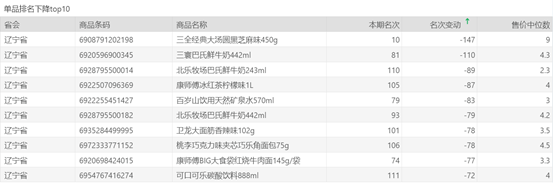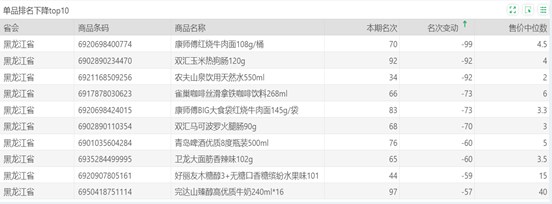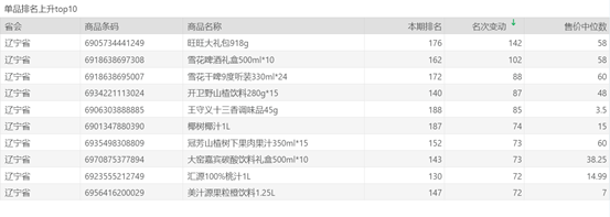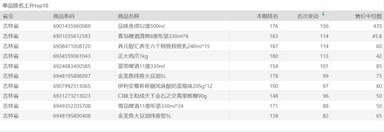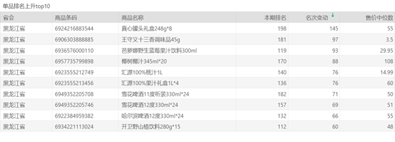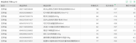 | 排名 | 名次变动 | 商品条码 | 商品名称 |