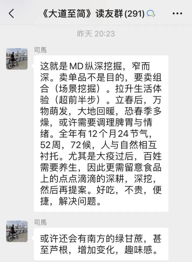 这两天,在联商网《大道至简》读友群里,联商特约专栏作者司马正树老师转发了一段胖东来超市卖甘蔗的网上视频,由此出发,网友们展开了一次精彩的分享和讨论。司马老师先是转发了一个网上视频,讲述胖东来卖甘蔗的四种方式。司马老师认为,这就是MD纵深挖掘,窄而深。卖单品不是目的,要卖组合(场景挖掘),拉升生活体验(超前半步)。全年有12个月24节气、52周、72候,人与自然相互衬托。尤其是大疫过后,百姓需要养生,因此更需留意对于食品点点滴滴的深耕、深挖,然后再提案。好吃,不贵,便捷,解决问题。随后,司马老师贴出两张图,内容为日本东京高档超市大量使用POP,介绍商品知识与用法。还提供了研究数据,表明店内POP商品海报在商品推介方面是第一推动力。在司马老师看来,零售业依旧需要沉到现场去洞察需求变化,夯实卖场商品基础,研究实现“美好生活”的经营与运营架构、体系和组合演化模式(model)。顾客是人,要研究理解顾客,首先从观察顾客的日常生活开始。只有不断摸索培养“理解顾客的洞察力”,才会积累起发现“新市场的创造力”。司马老师进一步分析指出,“观察”(observation)与“洞察”(insight),一字之差,却有着不同的含义。“观察”通常指针对对象物之状态及变化,做出认真客观的关注与注视,然多会受障于事物之表象的变化与状态;而“洞察”,多是指针对对象物,在观察基础上,发现并探究悟出其背后深层次上的本质性内容,或是观察后的顿悟,这与埃隆·马斯克所倡导的第一思考原理,颇有异曲同工之妙。有网友还评论认为:“妙有为用”,商品是“物”,顾客真正需要的是“用”,所以面向顾客需要来做提案,就是零售商要为顾客带去好“用”,方便其“用”,就要设计好各种“妙有”,各种创造性的组合。所以,经营不仅仅是商品本身,更要体察“用”处,这就需要始终把顾客放在心中。对此,司马老师也提出了自己看法,由日常上的“用”到洞察后所悟出的“妙用”,或许可以理解成由“提供基本价值”,升华到新的价值体验与发现,即过渡到提供“情绪性价值”,乃至感动。店家洞察至此,顾客会有共鸣与感动,由衷赞叹店家想的周到,这便是商业追求的某种最佳境界,即店家与顾客形成彼此相生相托的鱼水情。同时,他强调:“妙用即零售,商家自己之创造。由此看来,当下我们的许多店家,恐怕还多在‘用’上徘徊蹒跚惆怅,鲜有直达‘妙用’的境界者。零售依旧是蓝海,就价值提供而言,依旧尚有许多有待洞察后深挖的领域与创造空间。”网友表示,司马老师的观点和内容值得反复仔细多思深思,观察法能最客观研究市场,很多跨时代意义的产品都是这么产生的。本次讨论源起细微,从胖东来卖甘蔗出发,循序渐进,深入浅出,通达经营要义,让群友们受益匪浅。