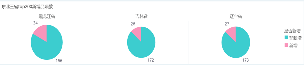 本期新增品项黑龙江省最高,新增34个品项,辽宁其次27个品项,吉林26个品项 更新比例分别17%,13.5%,13%。