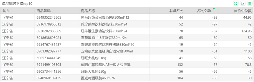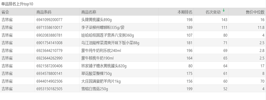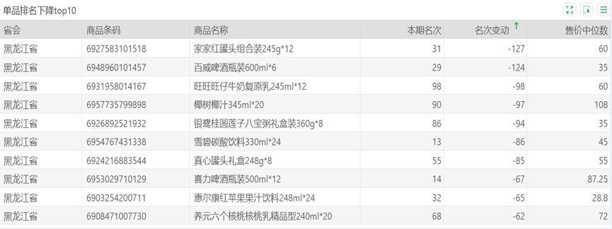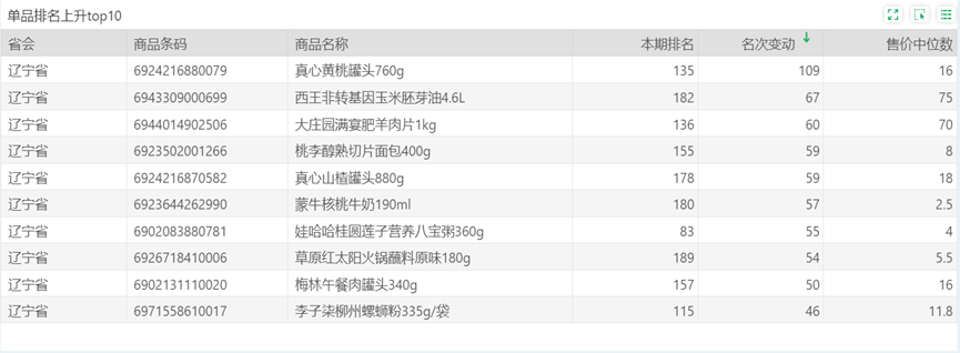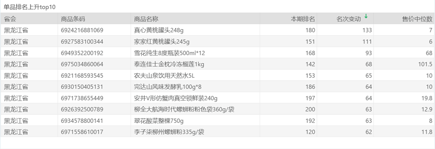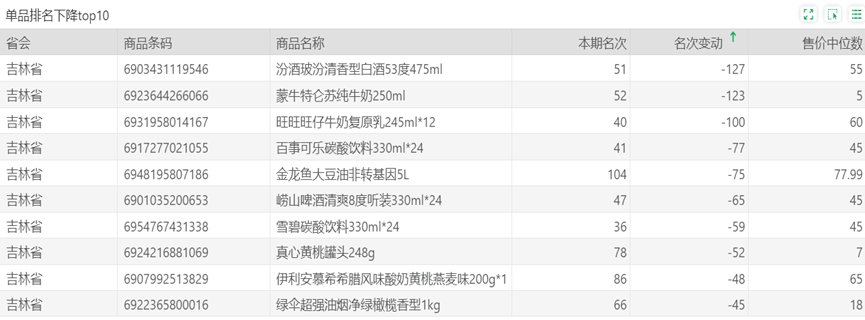 | 排名 | 名次变动 | 商品条码 | 商品名称 |