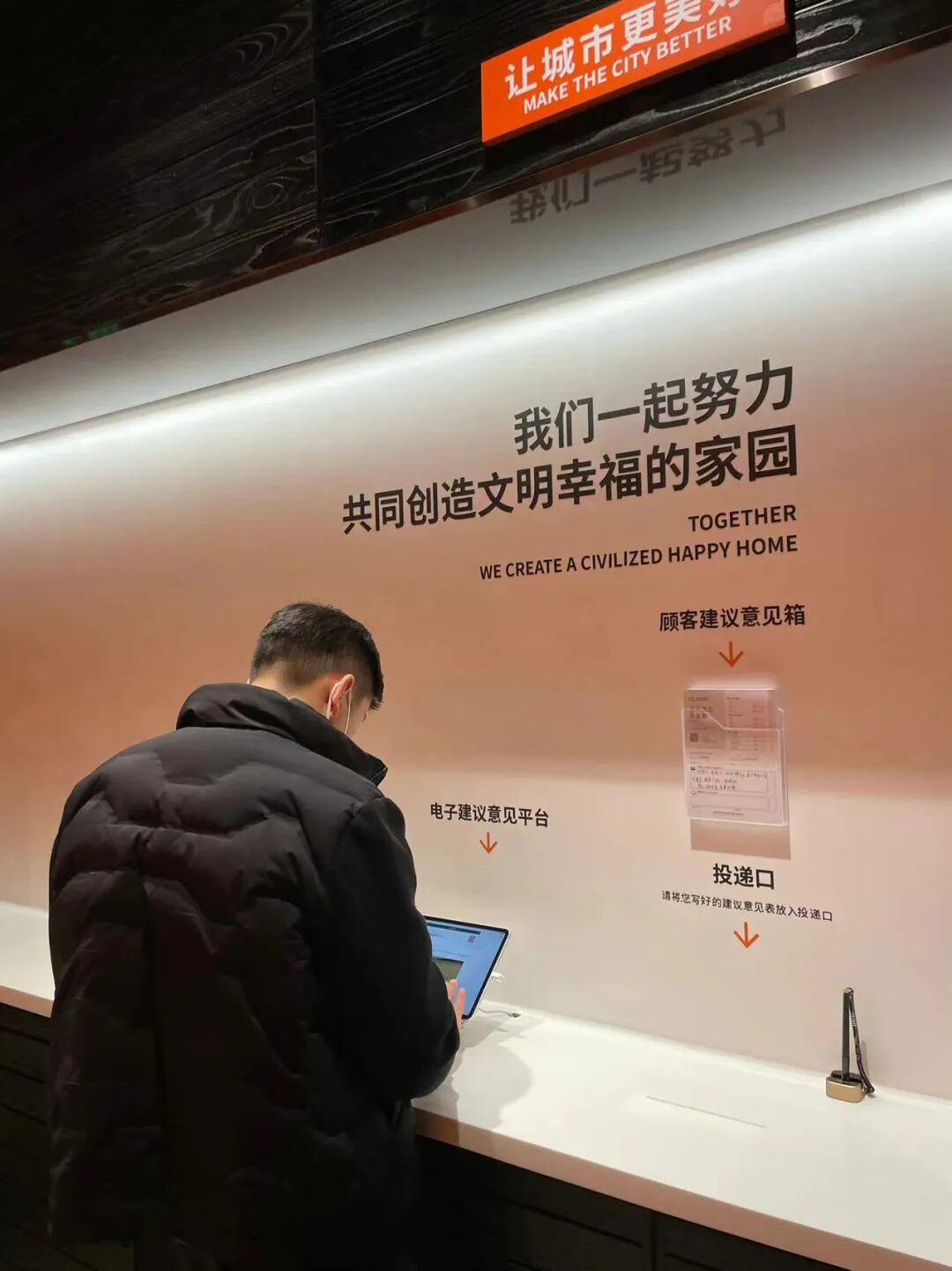 就像你们贴的地毯,楼梯那么脏就随便往上放,那你们的思想是什么?这边刚粉完墙那边就用脚踩,很多公共财产和工作工具不知道用心爱护和保养,公司不计成本的希望去创造美,但是你们不计成本的去践踏美,你们有尊重吗?