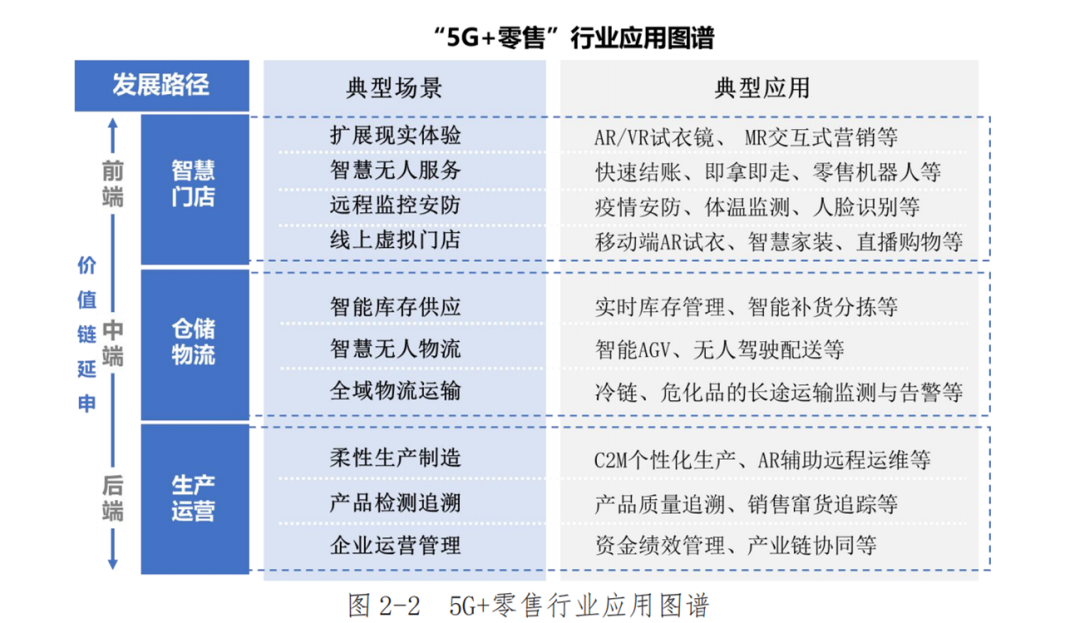 去年11月,中国连锁经营协会携手中国电信正式发布了《“5G+零售”行业应用白皮书》。《白皮书》立足零售行业发展趋势,以5G 网络“超高速率、超低延时、超大连接”为切入点,呈现“5G+零售行业”的叠加倍增效应,提炼了“5G+零售”应用总体架构,提出了“5G+零售”行业应用图谱,形成了“5G+零售”十大典型应用场景,呈现了5G技术赋能零售行业的应用实践。我们想要探讨的是,当“5G+零售”围绕人、货、场,对虚拟社交互动、线上线下渠道、个性需求服务等新零售动能进行深度融合时,在模式、场景、产品和服务体验上,又将给零售行业带来哪些价值和变化?这一切的想象空间有多大?今天,当线上线下加速融合,全渠道已成为零售企业的标配,购物时效变得越来越快之时,消费者更希望能在线上购物时感受到身临其境,更真实、更好的购物体验。另一方面,线下门店依然是零售企业的重要战场。如何让消费者更愿意走进门店,享受并爱上线下购物的乐趣,也是不少企业思考的问题。随着数字原住民“Z 世代”成为新生代消费主力,依托 5G、AR、VR、AI 等技术打造的虚实融合、丰富新奇的“元宇宙”购物空间更加符合年轻一代消费人群的体验需求。因此,在5G技术应用落地中,给消费者带来更有趣,互动性更强的体验,是不少实体零售企业吸引消费者走入线下的法宝。2020年,一场突如起来的新冠疫情,使得国内线下实体经济遭受重创,彼时处在疫情中心的武汉受到的影响尤为严重。据不完全统计,2020 年疫情期间,武汉商综体整体营业额下降近七成,客流量下降近九成。面对这一困境,在2020年,湖北头部商综体武商广场联合中国电信武汉分公司,基于 5G 优势提出“1+4+X”一站式方案,共同打造了以 5G+MEC 为基础设施架构的智慧商业综合体。得益于 5G 大带宽传输和强存储能力,整个武商广场通过线上VR 商城被“搬”到线上。顾客可以通过App、小程序等线上入口,在 VR 环境内,全程浏览武商广场所有店面,并实时了解最新优惠信息,新品信息,以及获取随机红包、福袋等互动性产品。当顾客通过 VR 环境进店挑选商品时,甚至可以直播连线现场导购,完成商品挑选。AR 试妆试戴、线上 VR 商城、VR 云逛街、AR 智慧导航、AR 数字化景观等多项基于 5G 应用在武商广场纷纷落地,为商场、用户提供数字化商业场景和沉浸式体验一体化新型服务,受到了广大消费者的追捧。据《“5G+零售”行业应用白皮书》介绍,武商广场5G+MEC智慧综合体的成功运行发挥了标杆效应,湖北省内 300 多个智慧商综体参考并借鉴了项目成果,为 7.5 万湖北商户进行信息化赋能升级,服务了 5800 万常住人口,预计拉动 2500 万产值,通过发券、引流、联合促销拉动 1.5 亿消费。由此可见,5G应用的落地,不仅给消费者带来全新的购物体验,更重要的是,依托大数据和人工智能,精准洞察用户需求,帮助品牌商户进行更好的运营和营销,增加与顾客达成交易的可能性,从而形成零售新商业形态。今天,仓储物流环节变得比以往任何时候都更为复杂,在零售业的供应链系统中,承担了更加重要的角色。随着5G技术在物流仓储、运输、配送等各个环节的落地应用,零售业迎来了智能物流时代。如何利用5G技术,打造更为健全、高效、智能的仓储物流,提升供应链效率?作为智能物流的探索实践方面,京东长春亚洲一号仓5G+仓储物流的案例,尤为值得行业关注和借鉴。在京东长春亚洲一号仓,最常见的场景是,一辆辆有序运输着货物的5G+AGV小车、按要求挑选货物的自主移动机器人(AMR),货物拣选机械臂……这些物流设备“各司其职”,有条不紊地进行收货、存储、包装、分拣。《“5G+零售”行业应用白皮书》介绍,京东物流率先建设了全国领先的“5G 智能物流园区”,并相继实现了规模化 5G 智能仓储机器人的生产落地,形成标准化的仓库、园区等 5G 智能物流产品和解决方案,构建起包裹、场地、车辆、人员和设备全面高效连接的“智能物流世界”,率先将 5G 技术融合应用到实际场景之中,全面提升物流运营效率,打造智能物流发展的标杆。京东打造的长春“京东亚洲一号无人仓”是全流程无人仓库,占地 4 万平方米,物流中心主体由收货、存储、包装、订单拣选四个作业系统组成。各种机器人多达上千台,分为十几个不同的工种,同时也应用了自动立体式存储、3D 视觉识别、自动包装、人工智能、物联网等前沿技术。而京东物流自主研发并具有自主知识产权的搬运机器人“地狼”AGV 更是让京东物流旗下的园区坪效提升 100%,搬运效率提升 200%。得益于 AGV+穿梭车+AI安防+机械臂四大场景、5G 定制网的规模部署,如今物流网络异常事件减少超过90%,异常中断时间有效减少,运维成本下降超过 50%,人效可稳定提升 2 倍以上。预期近年,随着 5G 场景进一步推广和 5G 成本进一步下降,仓储成本可降低超 30%。无论技术如何发展,商品力仍旧是零售业的核心要素。随着科技的不断发展,5G应用场景的落地,消费者对商品提出了更多要求。品牌商和零售商们会越来越注重根据消费者的需求进行生产和采购。最近几年,如果你在时尚零售、电商行业,很难不被一家快速崛起的跨境时尚公司所吸引。这家被称为中国最神秘的千亿美金估值公司——SHEIN.业内讨论最多的,则是它如何通过自主设计+小单快返模式打造爆款的运营模式,火爆海外市场。根据去年11月英国知