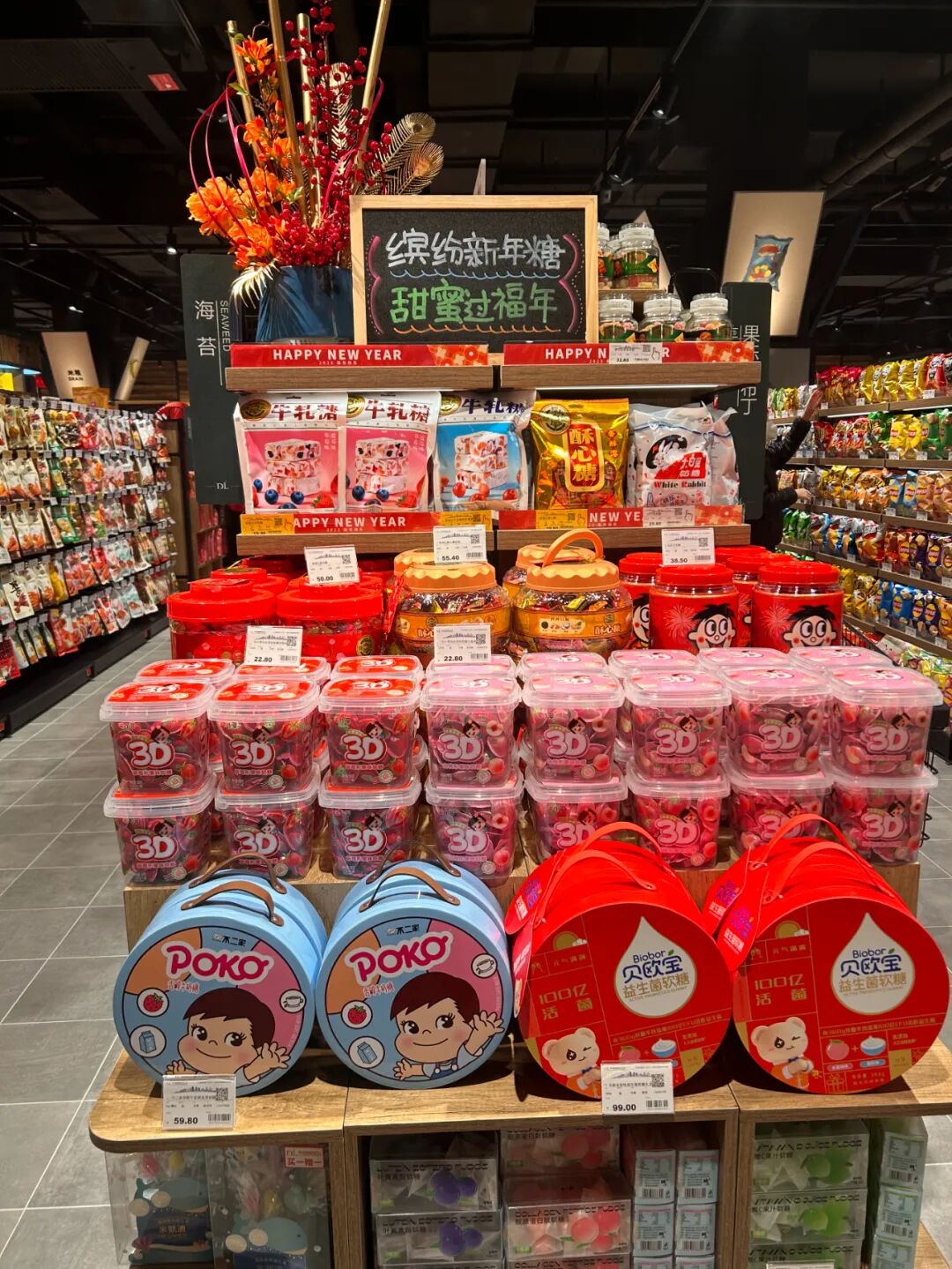胖东来的新年选品、商品美陈、氛围布置已经完成,关于新年的一切,存在于卖场的每个角落,浓浓的年味和丰富的年货的商品已经进入一部分顾客的家庭与生活。
