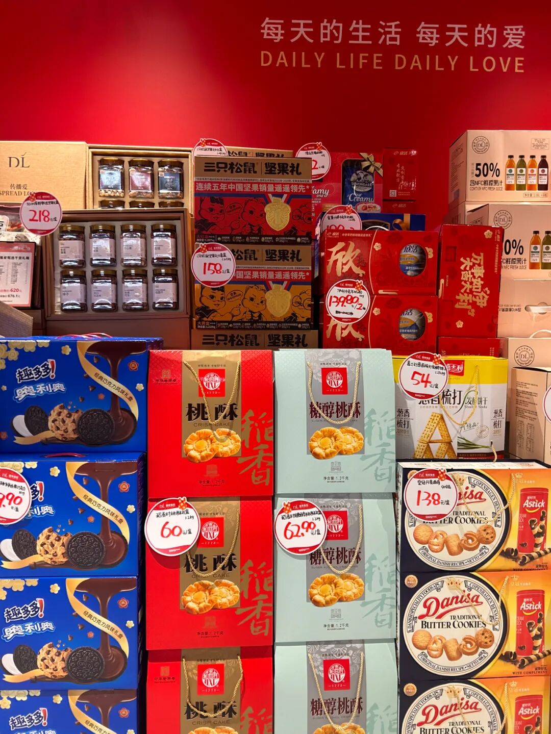 DL芝麻糖、嘉士利饼干、和皇冠丹麦曲奇、稻香村桃酥、趣多多奥利奥······