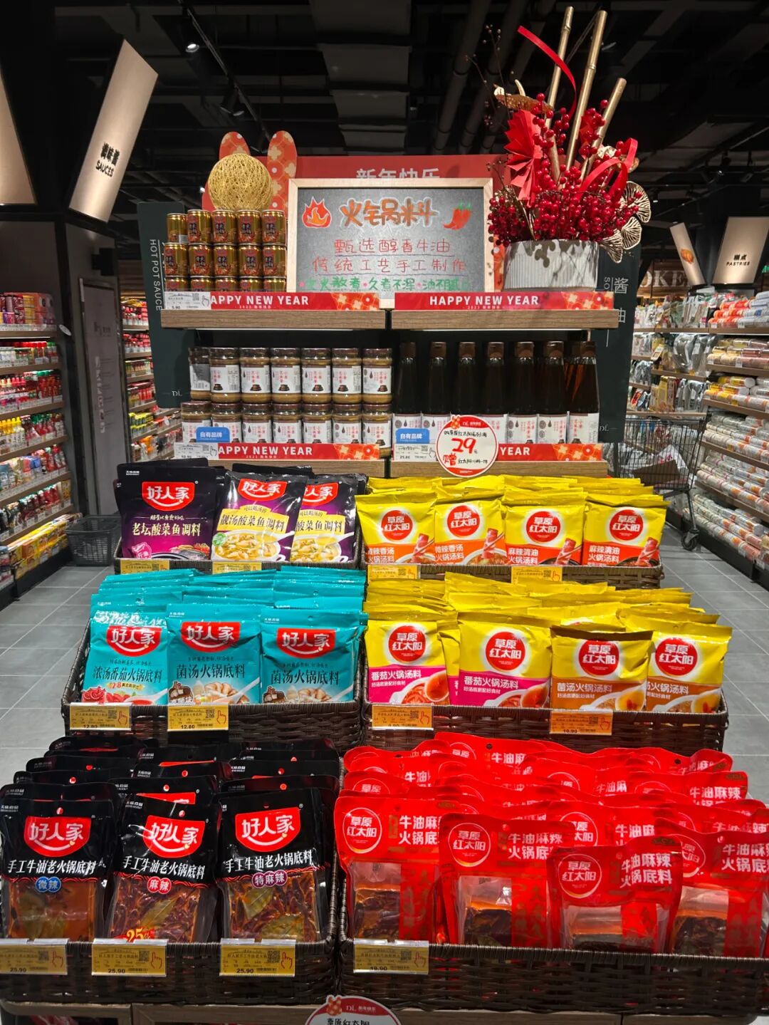 胖东来的新年选品、商品美陈、氛围布置已经完成,关于新年的一切,存在于卖场的每个角落,浓浓的年味和丰富的年货的商品已经进入一部分顾客