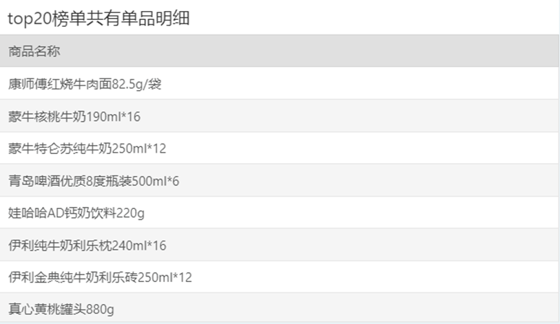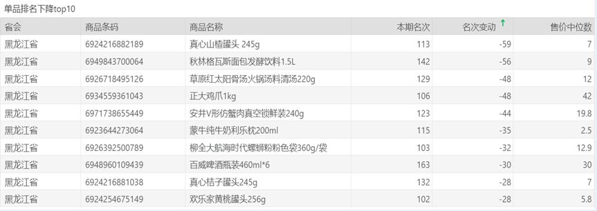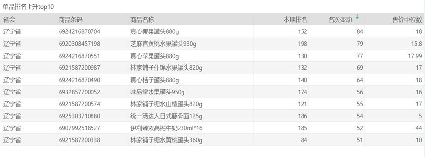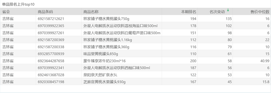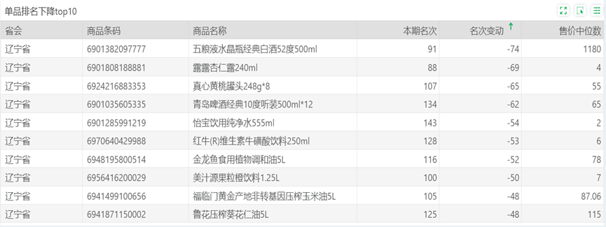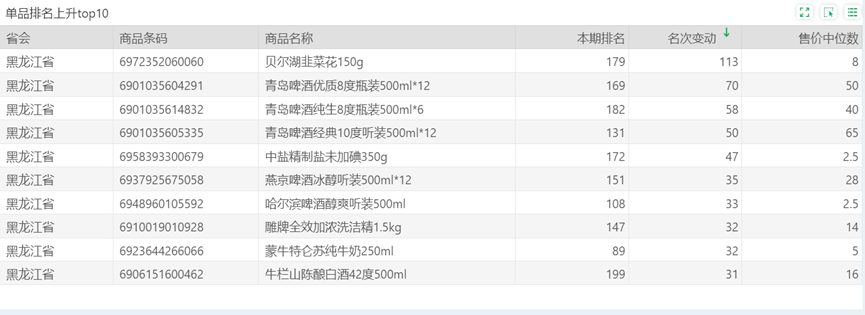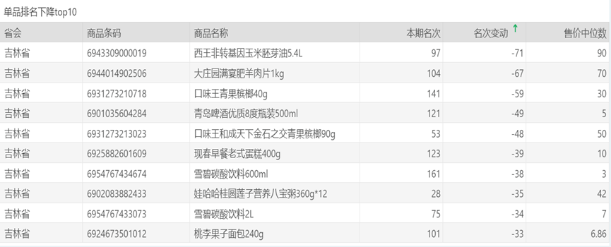| 排名 | 名次变动 | 商品条码 | 商品名称 |